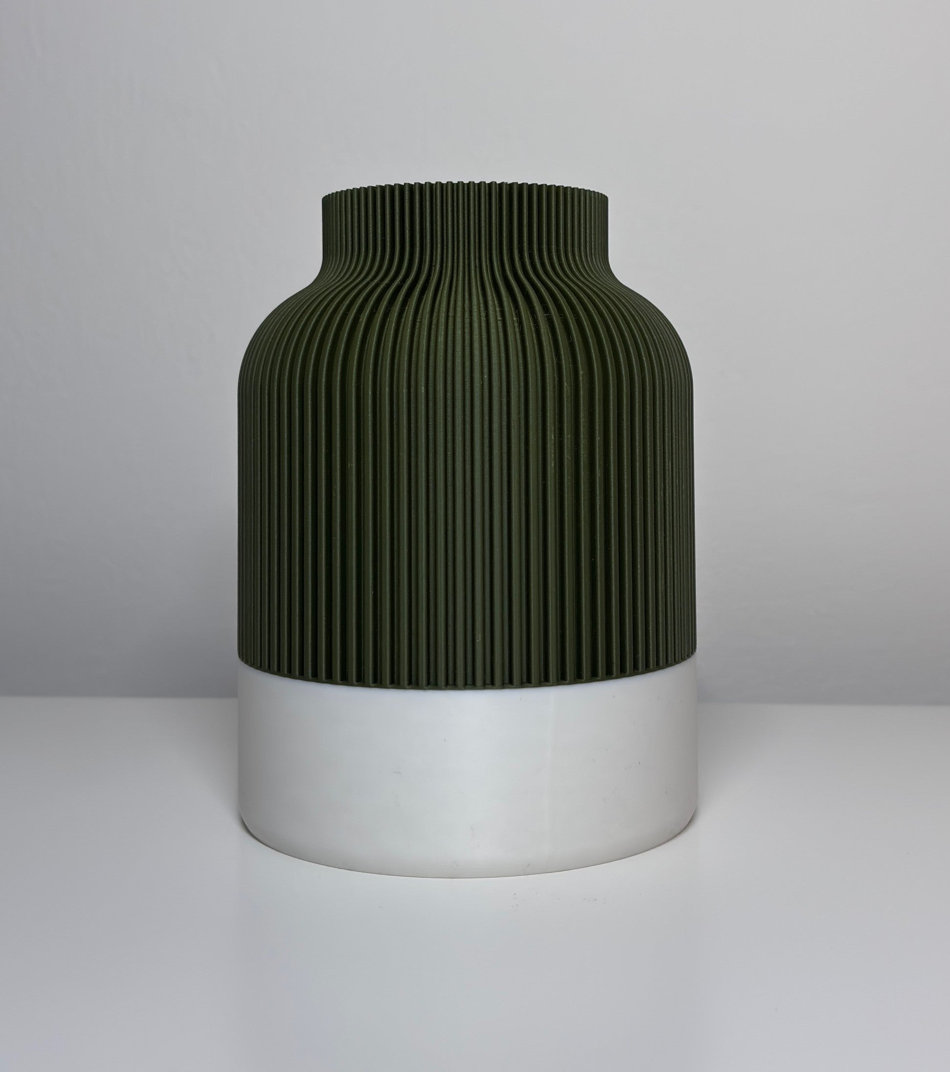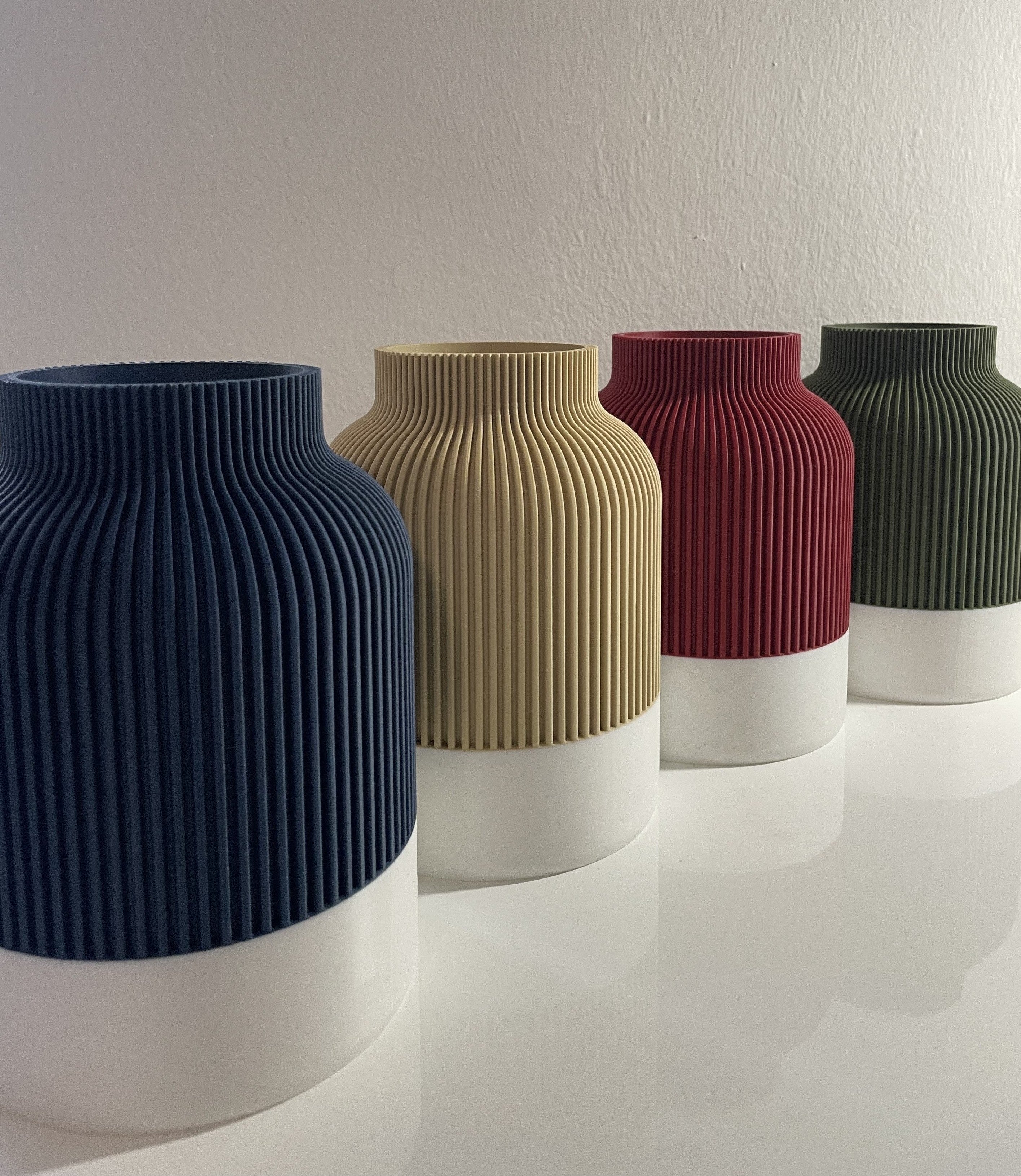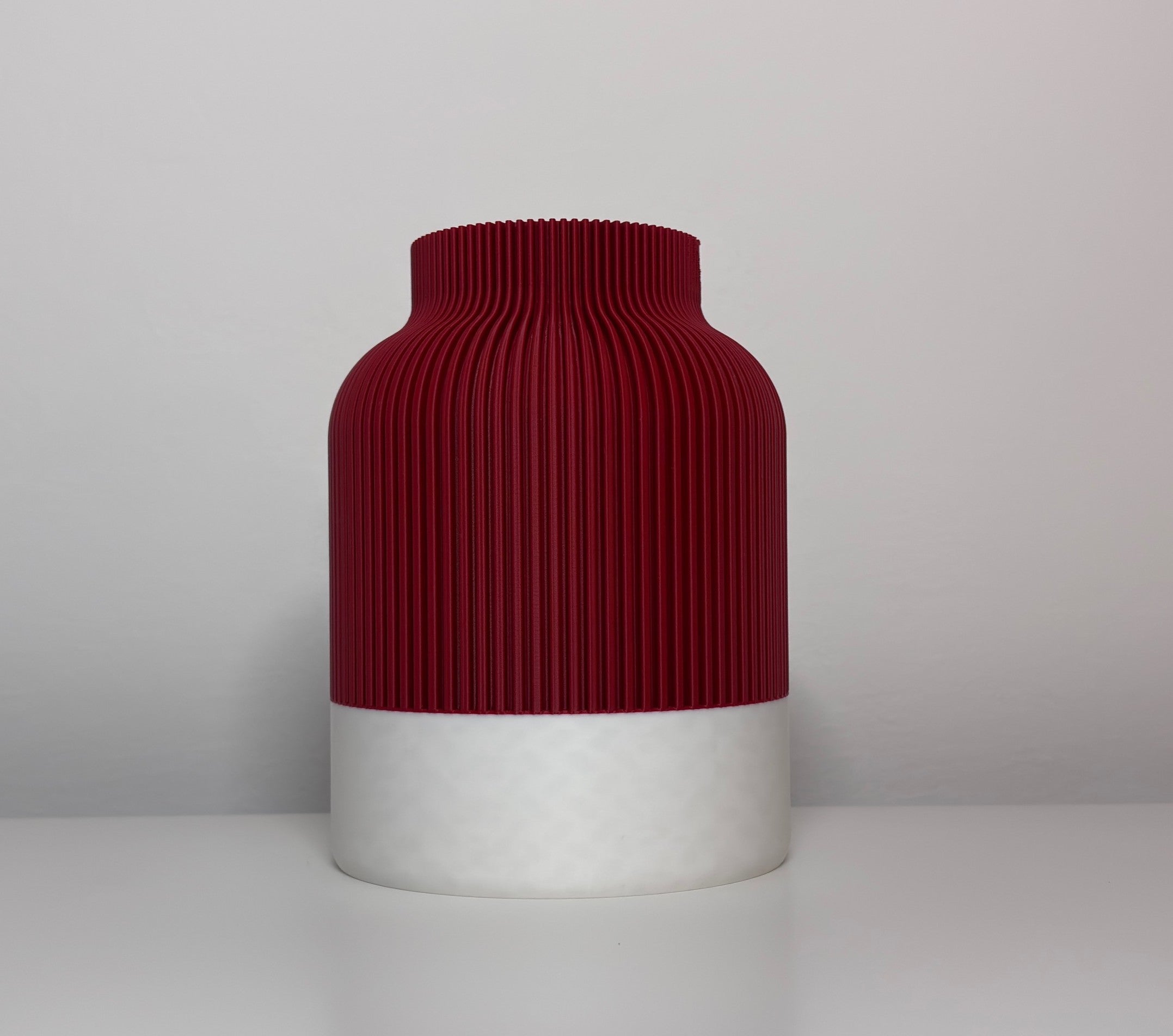 Diese Vase überzeugt mit ihrer klaren, geradlinigen Silhouette und einer feinen Rillenstruktur, die ihr ein besonders harmonisches Erscheinungsbild verleiht. Durch den präzisen 3D-Druck entsteht eine Oberfläche, die Form und Funktion elegant verbindet.