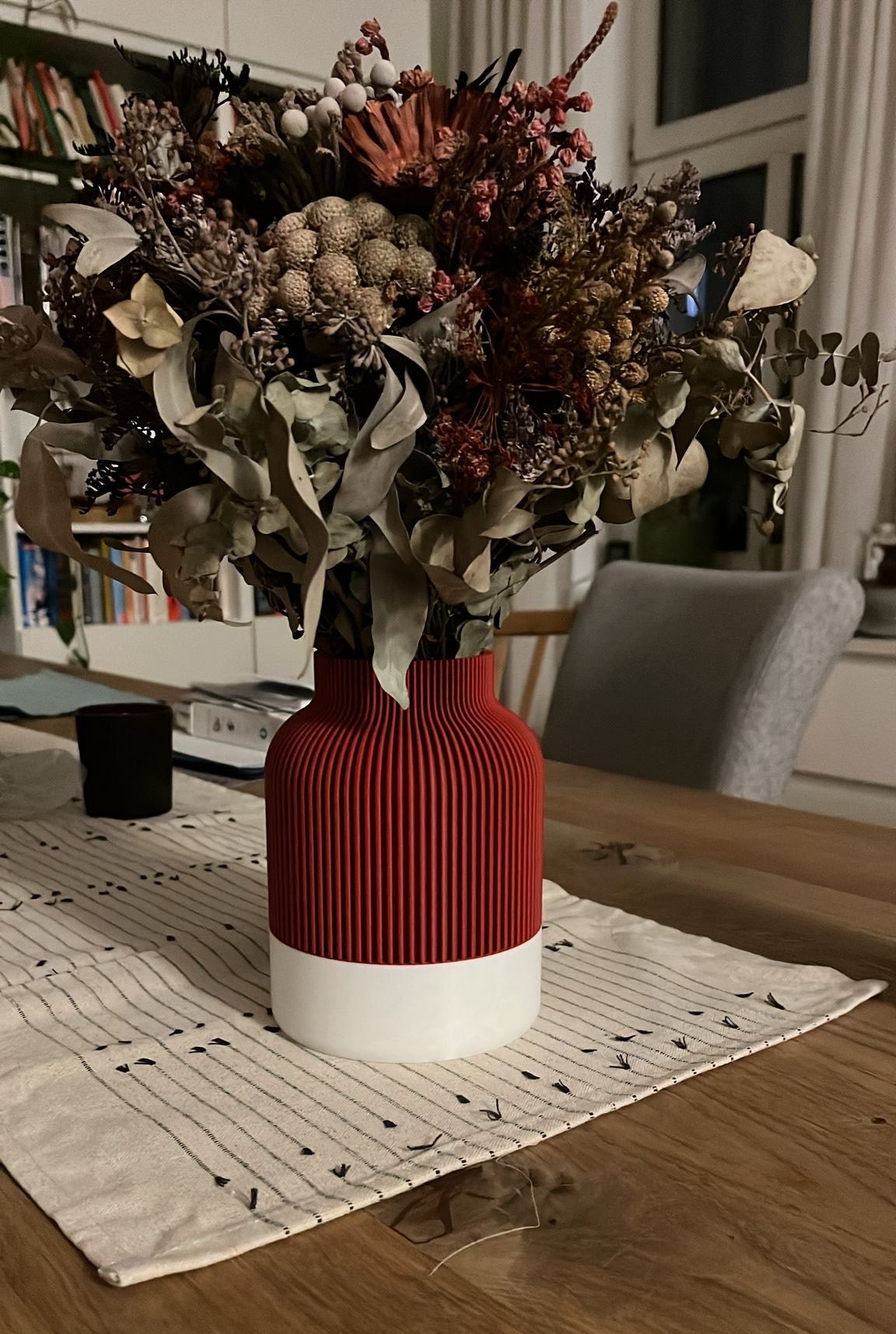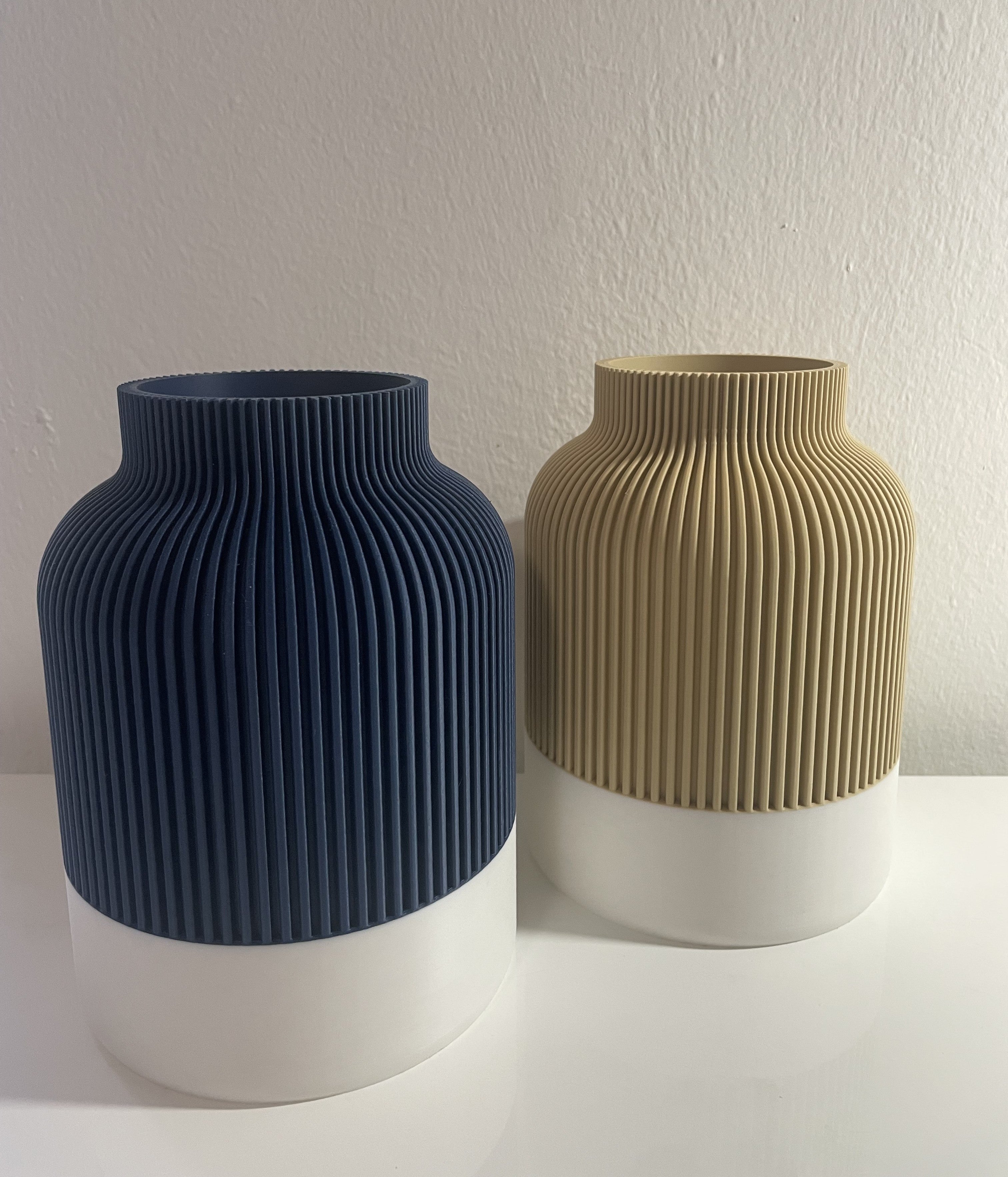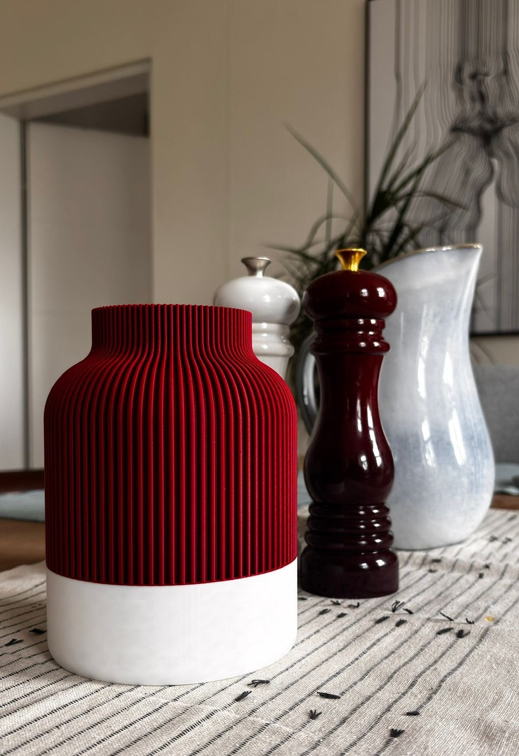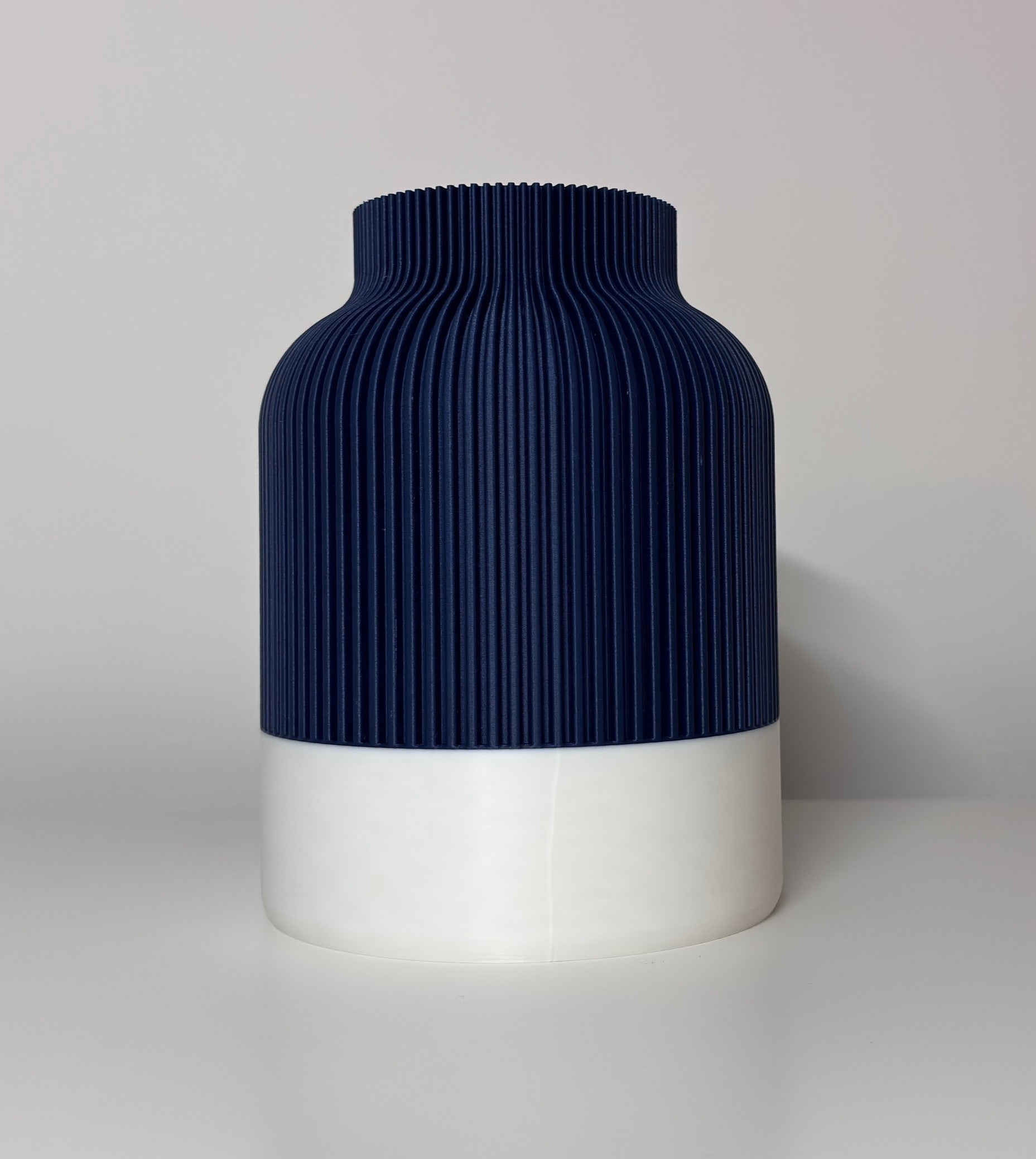 Diese Vase überzeugt mit ihrer klaren, geradlinigen Silhouette und einer feinen Rillenstruktur, die ihr ein besonders harmonisches Erscheinungsbild verleiht. Durch den präzisen 3D-Druck entsteht eine Oberfläche, die Form und Funktion elegant verbindet.